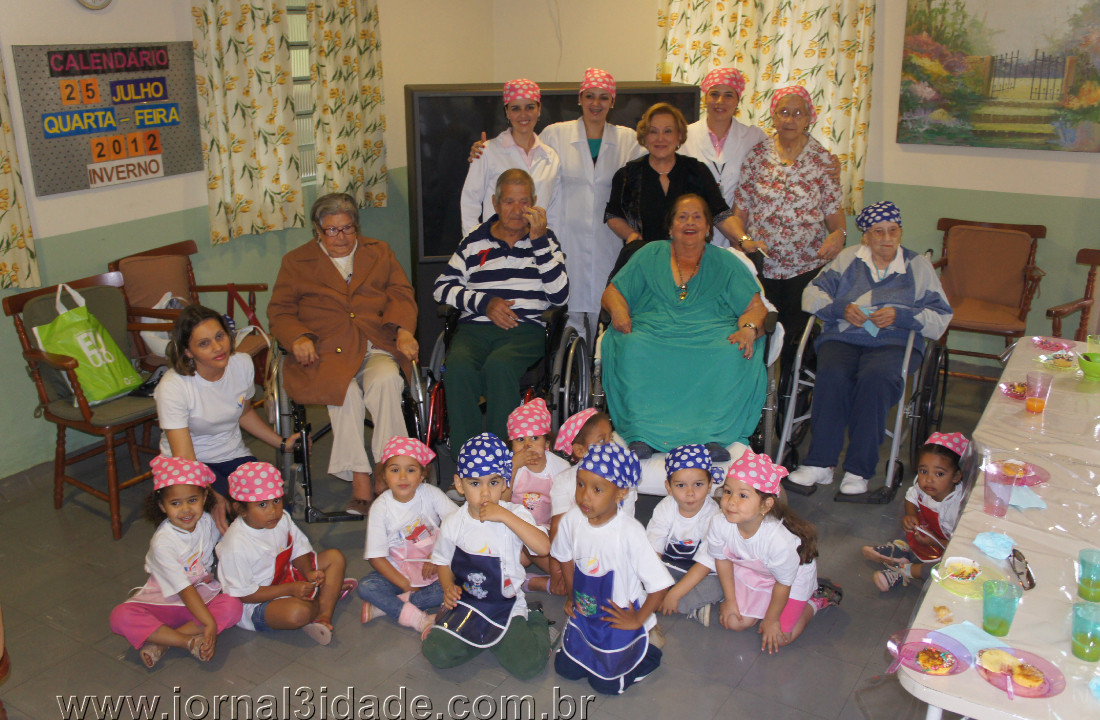 Nicette bruno posando para o Jornal da 3ª Idade, com os idosos e as crianças, na comemoração do Dias dos Avós, em 2012. Foto: jornal3idade.com.br
