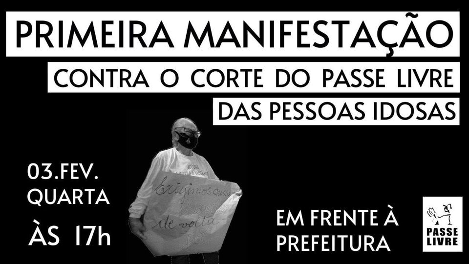 O Movimento Passe Livre promoveu no final da tarde de ontem, na frente da Prefeitura de São Paulo, uma manifestação contra o fim da gratuidade para idosos entre 60 e 64 anos nos ônibus municipais da capital paulista (SPTrans) e nos transportes metropolitanos: ônibus e trólebus do sistema da EMTU, Metrô e CPTM.