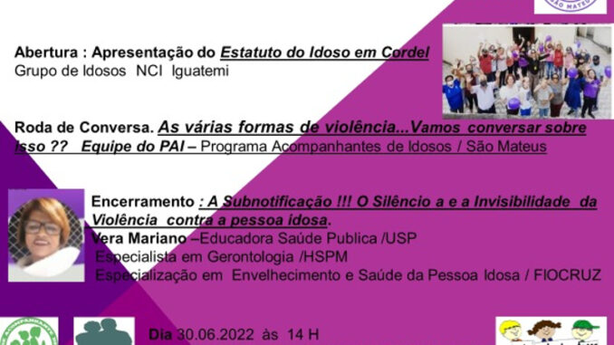 O Fórum do Cidadão Idoso de São Mateus, na Zona Leste da Capital, em São Paulo, marcou para a quinta-feira, dia 30 de junho, a partir das 14 horas, seu encontro mensal. Presencial, no auditório da Subprefeitura de São Mateus, na Rua Ragueb Chohfi, nº 1400.