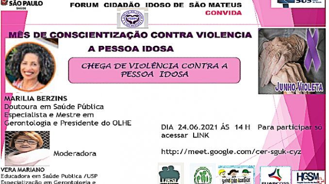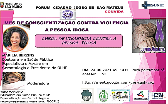 O Fórum do Cidadão Idoso de São Mateus, na Zona Leste da Capital, em São Paulo, marcou para a quinta-feira, 24 de junho, a partir das 14 horas, sua próxima reunião virtual.