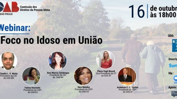 A Comissão dos Direitos da Pessoa Idosa da OAB- SP promove hoje, 16 de outubro, ás 18 horas, um seminário virtual com o tema “Foco no Idoso em União”, com a participação de presidentes das comissões de outros Estados.