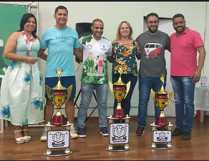 Deise, Prof. Ari Leopoldino Rodrigues Jr, Prof. Emerson e Roseli Lopes da Serel Osasco, Prof. Edi e o Secretário de Cultura, Paulinho Samba de Rua. Foto: divulgação JATIO