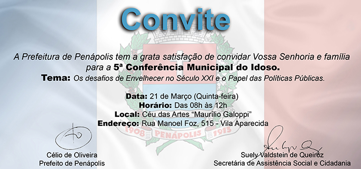 Penápolis, cidade da Região Administrativa de Araçatuba, distante 477 km da Capital, em São Paulo, realizou no dia 21 de março, a sua 5ª Conferência Municipal do Idoso, organizada pela Secretaria Municipal de Assistência Social e Cidadania (Sasc) e pelo Conselho Municipal do Idoso.