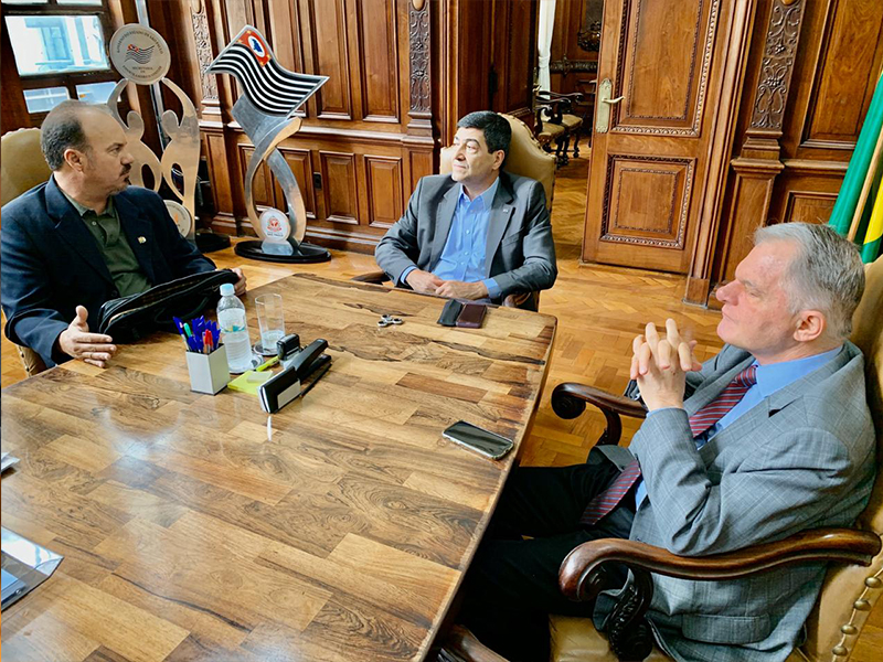 Prefeito de Osvaldo Cruz 2 Prefeito de Osvaldo Cruz, Secretário estadual de Esportes Aildo Rodrigues Ferreira e o Deputado Estadual Mauro Bragato (PSDB) em audiência sobre obras para esportes na cidade de Osvaldo Cruz. Foto: Imprensa/PMOC
