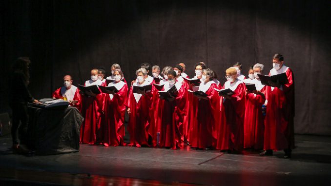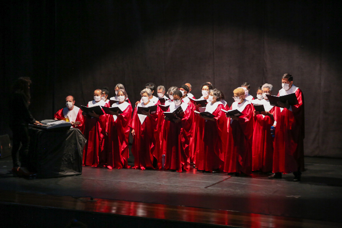 Coral da Melhor Idade, de POA SP na gravação da apresentação do Natal 2021. Foto: Rodrigo Nagafuti/SecomPMPCoral da Melhor Idade, de POA SP na gravação da apresentação do Natal 2021. Foto: Rodrigo Nagafuti/SecomPMP