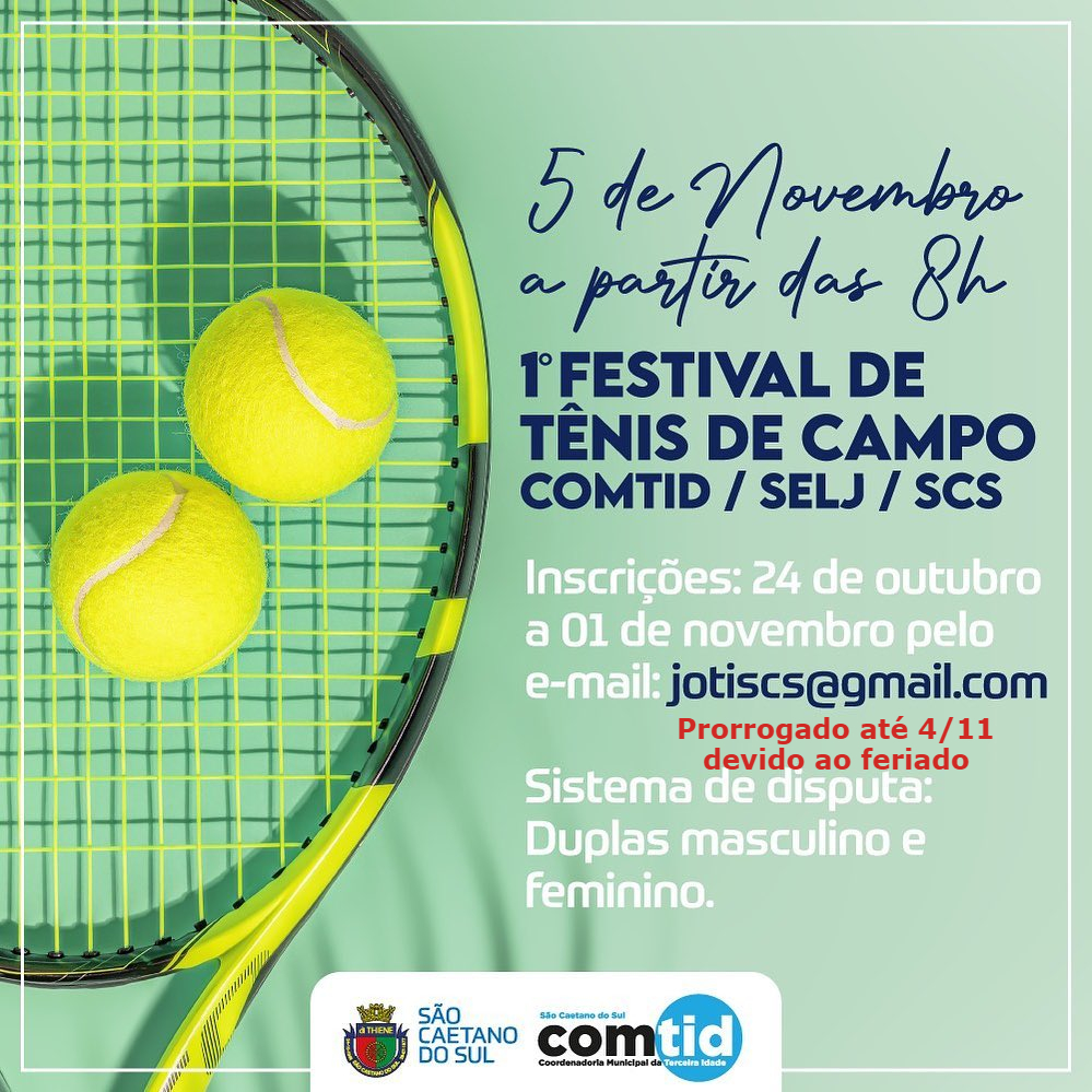 A COMTID-Coordenadoria Municipal da Terceira Idade da cidade de São Caetano do Sul, na Grande São Paulo, vai realizar no dia 5 de novembro o 1º Festival de Tênis de Campo, no Centro Municipal de Tênis, na Rua Justino Paixão, 357.