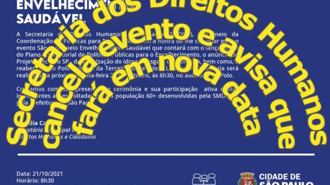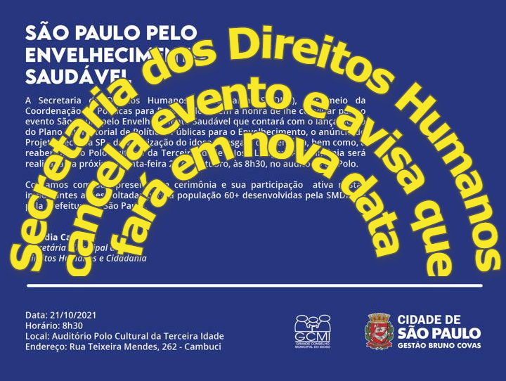 A Prefeitura de São Paulo cancelou o lançamento do Plano Intersetorial de Políticas para o Envelhecimento, que iria ser feito com a abertura do Projeto Recorda SP e a reinauguração do Polo Cultural da Terceira Idade do Cambuci.