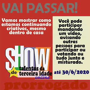 Para colaborar, de forma divertida, com o necessário e imprescindível isolamento das pessoas idosas nessa quarentena, o Jornal da 3ª Idade criou o concurso “Show de Talentos da Terceira Idade online”. O prazo inicial foi prorrogado para 30 de junho de 2020.