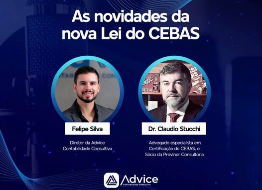 Quais são as novidades da nova Lei do CEBAS é o tema do debate ao vivo que será realizado amanhã, às 16h30m, pelo canal no Youtube da Advice Contabilidade.