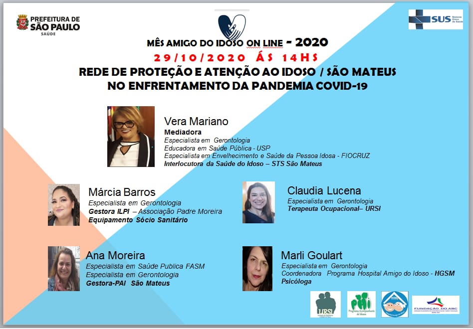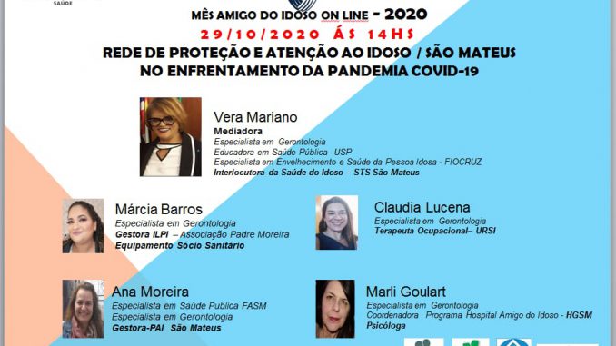 Rede de Atenção e Proteção ao Idoso de São Mateus debate o Enfrentamento à COVID19 29/10/2020 Hermínia Brandão São Mateus e Região - Capital SP, SAÚDE 0 A Rede de Proteção e Atenção ao Idoso de São Mateus, na Zona Leste da capital, em São Paulo, debate hoje as ações de enfrentamento a COVID19, às 14 horas pelo Youtube. Fórum de São MateusSemana do Idoso 2020