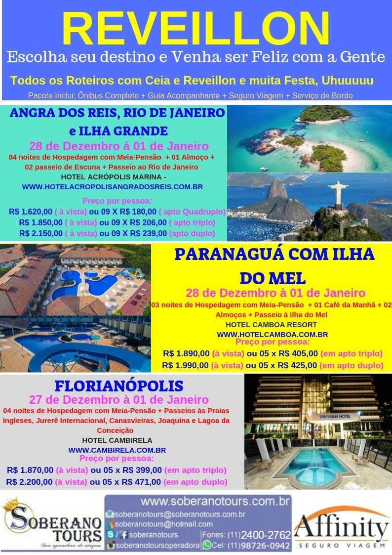 A Soberano Tours escolheu alguns dos pacotes mais interessantes disponíveis para a passagem do Ano Novo. Confira e entre contato para maiores informações!