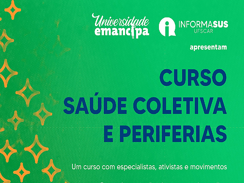 O curso de extensão “Saúde Coletiva e Periferias”, promovido pela parceria entre a plataforma InformaSUS da Universidade Federal de São Carlos (UFSCar) e a Universidade Emancipa, será realizado entre os dias 4 de maio e 8 de junho. O período de inscrições gratuitas começará na próxima sexta-feira dia 26 de março.