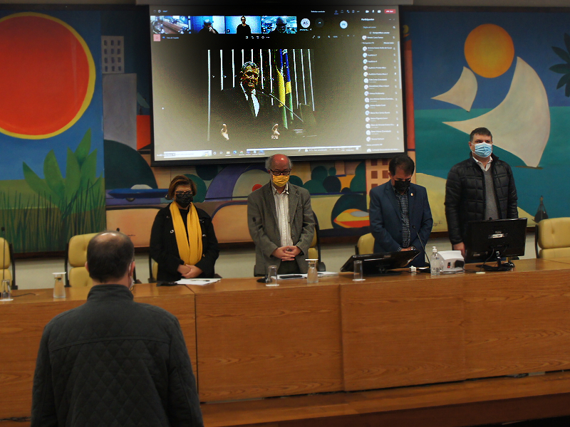 Audiência Publica JOMI Abertura da audiência pública sobre a realização JOMI 2023 e a sua inclusão no calendário da cidade. Um minuto de silêncio pelo falecimento do vereador Arnaldo Faria de Sá. Foto: jornal3idade.com.br