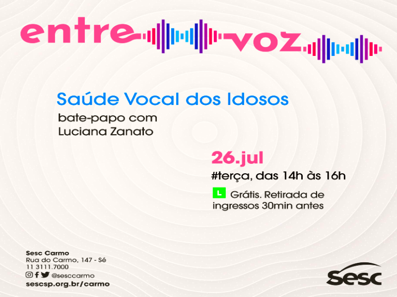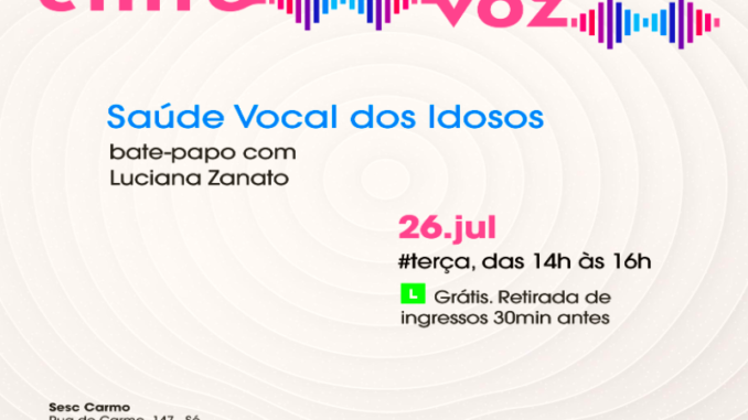 Neste mês de julho, o encontro no Sesc Carmo, no centro antigo de São Paulo, vai debater a temática “Saúde Vocal Para Idosos”.