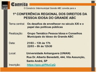 Hoje a 1ª Conferência Regional dos Direitos da Pessoa Idosa do Grande ABC