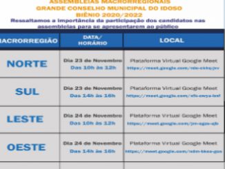 Nas assembleias regionais serão apresentados os candidatos e candidatas para conselheiros do Grande Conselho Municipal do Idoso de São Paulo, na gestão de dezembro de […]