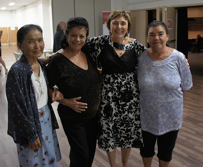 Aula inaugural da UAPI 2016 Alice, Nalva Maria e Idalira alunas de Santo Amaro, com a médica Guiomar, coordenadora da Coordenadoria do Idoso. Foto: Jornal da 3ª Idade