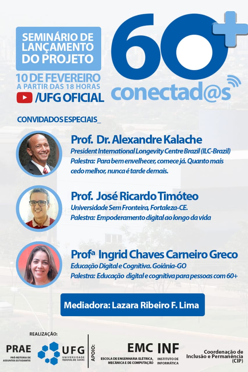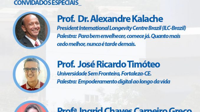 O Seminário contará com as participações do Professor Dr Alexandre Kalache, presidente do Centro Internacional de Longevidade Brasil (ICL Brazil), com o tema “Para bem envelhecer, comece já. Quanto mais cedo melhor, nunca é tarde demais”, o Professor da Universidade Sem Fronteiras, de Fortaleza, José Ricardo Timóteo, que falará sobre o “Empoderamento digital ao longo da vida”, e a Professora Ingrid Greco da Educação Digital e Cognitiva, de Goiânia, com a palestra “Educação digital e cognitiva para pessoas com 60+”. A mediação será da Drª. Lazara Ribeiro F. Lima.