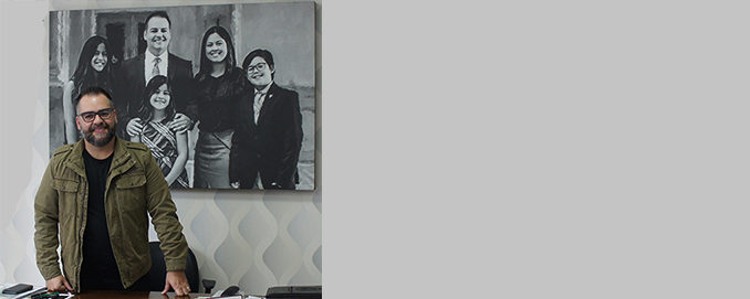 Vereador Gilberto Nascimento JR, no seu gabinete no Palácio Anchieta, com a foto da esposa e dos três filhos ao fundo. Foto: jornal3idade.com.br