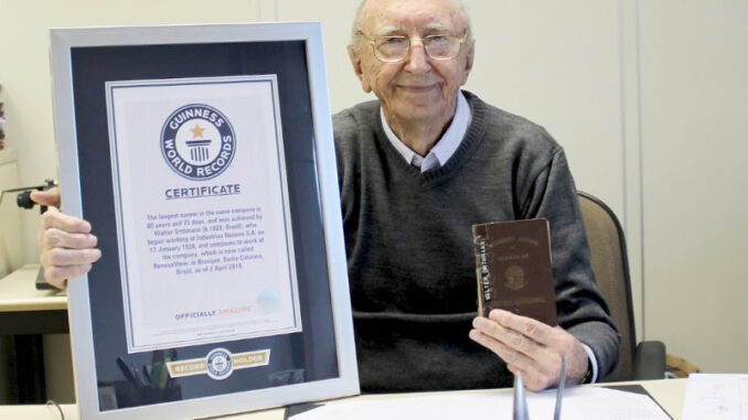 O catarinense Walter Orthmann, que está no Guinness Records como o funcionário mais antigo no mundo, numa única empresa, completou ontem 100 anos e não para de provocar surpresas.